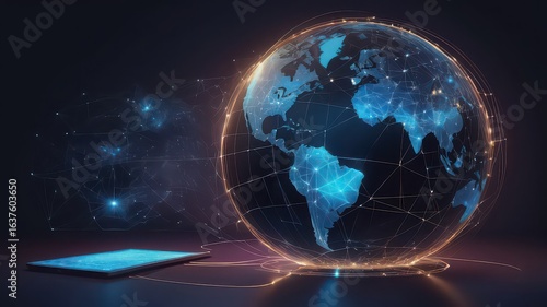 globe, earth, network, tablet, connection, digital, technology, earth, communication, global, cyberspace, abstract, datum, future, modern, design, background, surface, line, glowing, blue, dark, device, computer, worldwide, connectivity, innovation, virtual, concept, wireless, information, science, sphere, illustrated, artificial