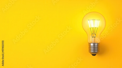 Glowing lightbulb on vibrant yellow background: innovation and creativity concept