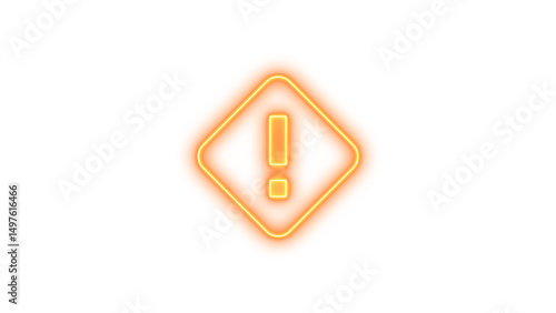 Glowing Neon Exclamation Mark Symbol, Neon alert rhombus icon glow with transparent background