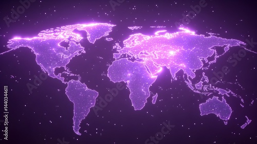 global, earth, map, purple, glowing, digital, network, connection, cyberspace, datum, technology, futuristic, abstract, light, line, point, node, cosmos, space, universe, electric, energy, vibrant, illumination, bright, shimmering, sparkle, graphical, graphic, design, illustration, visualisation, representation, geography, continent, country, region, international, worldwide, communication, linkage, interconnected, plexus, neon, modern, innovative, advanced, sophisticated