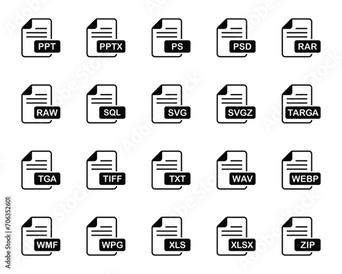 document, extension, format, page, paper, ps, raw, tiff, type, wav, zip, abstract, illustration, icon, vector