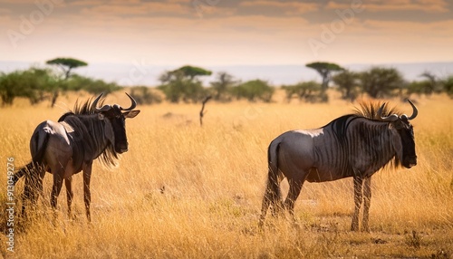 gnus in savannah, AI generated