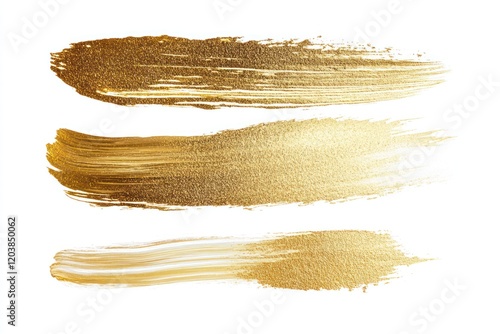 Gold paintbrush strokes, design elements, white background, texture.