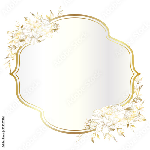 frame, vintage, flower, floral, rose, rose, elegant, border, banner, calligraphic, plant, hand-drawn, gold, gold, white, gradient, metallic, metal, line, doodle, vignetting, botany, botanical, luxury, filigree, ornate, feminine, box, element, label, blank, empty, decorative, decoration, shape, shiny, foil, ornament, illustration, invitation, wedding, arrangement