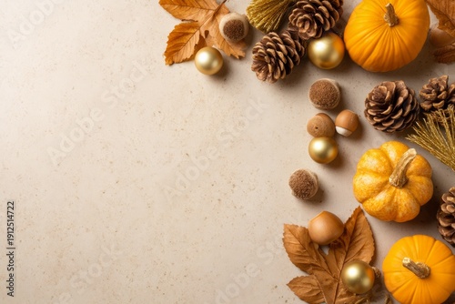 autumn, pumpkin, pine cone, seasonal, holiday, gold, ambience, peaceful, leaf, nut, decoration, nature, harvest, warm, rustic, festive, texture, background, arrangement, organic, simplicity, celebratory, cosy, fall, october, gladness, beauty, joy, warmth, tradition, bounty, family, togetherness, gathering