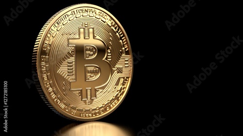 Golden Bitcoin coin, digital currency, dark background, financial illustration