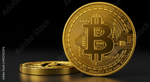 Golden Bitcoin Cryptocurrency Coin on Dark Background