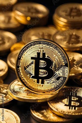 Golden Bitcoins on Wood