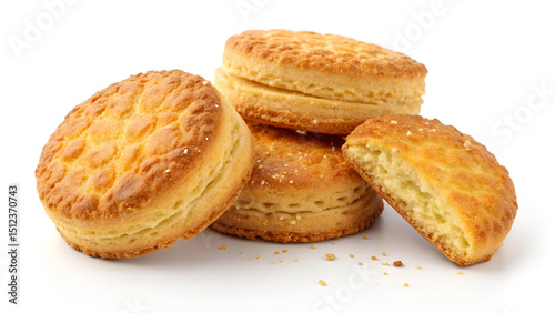 Golden brown butter biscuits with sweet taste, shown isolated on white background for advertising, branding, or web use.