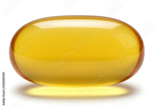 Golden capsule transparent gel pill isolated white background