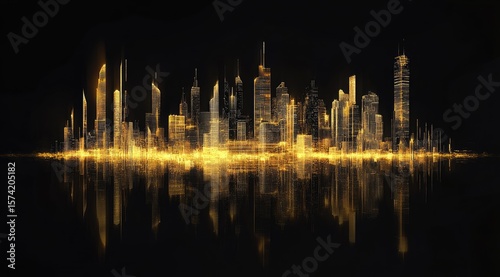city landscape, gold, city, skyline, glowing, light, digital, art, abstract, futuristic, modern, architecture, urban, night, illuminated, horizon, building, tower, skyscraper, line, structure, energy, technology, light, perspective, vibrant, dynamic, contemporary, illumination, design, illustration, graphic