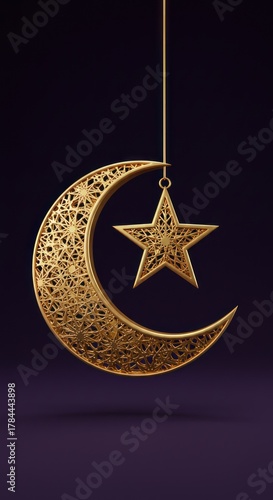 ramadan, crescent, moon, star, gold, ornament, islamic, muslim, celebration, decoration, religious, culture, traditional, festive, eid, holy, spiritual, symbol, design, art, pattern, luxury, elegant, hanging, dark, background, detail, intricate, gold, lunar, night, sky, belief, faith, worship, islam, greeting, card, template, graphic, illustration, artwork, shiny, metallic, precious, divine