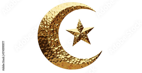 Golden Crescent Moon Star Vector Icon for Islamic Ramadan Eid Decorations and Muslim Holiday Graphics
