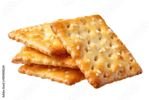 Golden Crispy Rectangular Crackers with Evenly Spaced Holes Stacked Closeup snack food, Isolated On Transparent Background, Png Cut Out