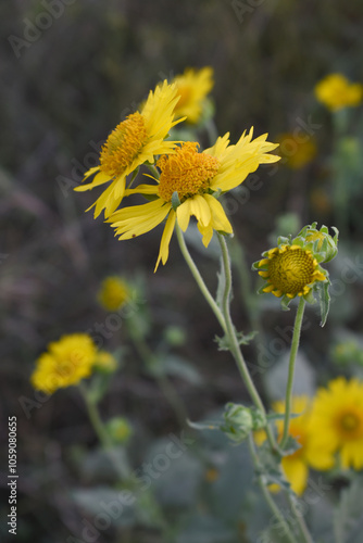 Golden Crownbeard (Also called Golden Crownbeard, Copen Daisy, golden crown beard) in the nature, Golden Crownbeard Flower closeup,Beautiful yellow flower closseup in nature Chakwal, Punjab, Pakistan