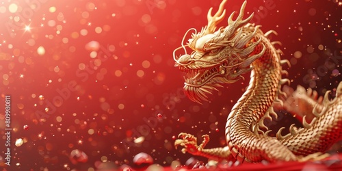 Golden dragon on red background