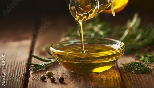 Golden Drizzle: Olive Oil and Herbs on a Rustic Wooden Canvas