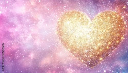 Golden Glitter Heart in a Cosmic Galaxy Background