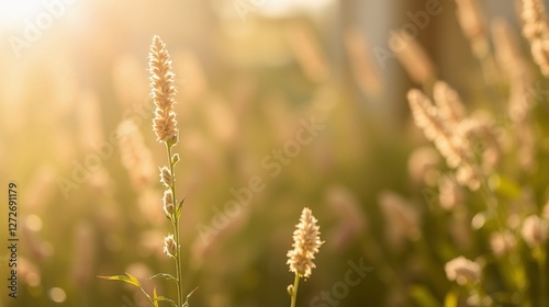 Golden Hour Blooming Grass Flowers in Soft Focus