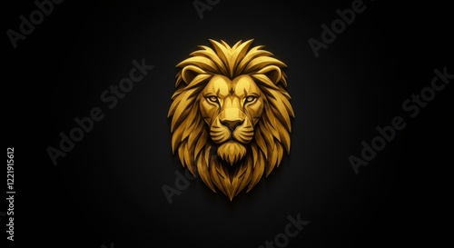Golden lion head emblem on a dark background, showcasing strength and majesty