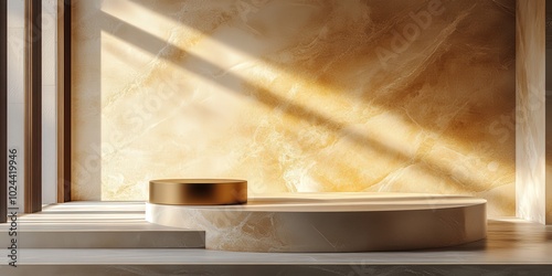 dais, marble, gold, sunlight, product, display, stage, presentation, platform, racked, luxury, minimalism, studio, background, interior, design, architecture, modern, elegant, abstract, geometric, lighting, shadow, ray, light, white, brown, bright, shiny, smooth, texture, pattern, contemporary, aesthetic, style, decor, decorating, clean, simple, room, window, glasses