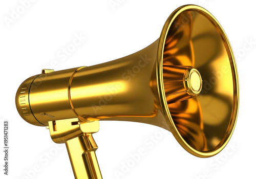 megaphone, bullhorn, gold, gold, announcement, speaker, loud, attention, marketing, communication, voice, broadcast, alert, promotion, advertising, news, shiny, metallic, object, warning, isolated, media