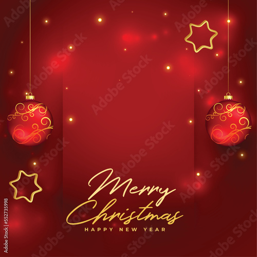 christmas, christmas, merry, happy, celebration, decoration, decor, december, holiday, winter, season, new, year, eve, festive, concept, invitation, event, greeting, wishes, party, design, graphic, vector, banner, background, card, three-dimensional, realistic, ball, bauble, star, red