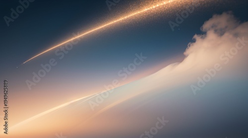 meteor, shooting star, night sky, star, comet, space, cosmic, astronomy, celestial, streak, glowing, golden light, sky, mountain, cloud, horizon, landscape, dreamy, fantasy, mystical, dramatic, atmosphere, universe, galaxy, wonder, exploration, adventure, inspiration, nature, twilight, serenity, cinematic, magical, nightscape