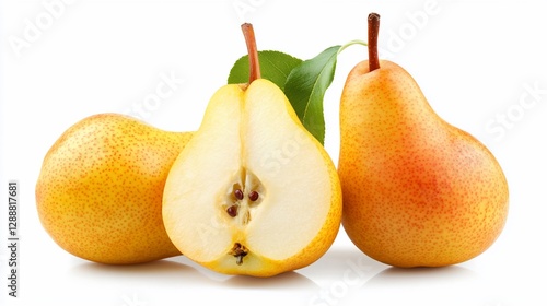 Golden Pears: A Fresh and Juicy Still Life with Cut Pear on White