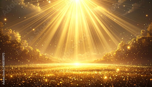 gold, ray, light, sun, landscape, serene, glowing, sparkle, illumination, heavenly, beautiful, nature, peaceful, tree, cloud, horizon, grass, field, sparkling, glistering, dust, particle, sky, night, day, warm, bright, energy, magic, mystic, spiritual, illuminated, radiant, abstract, vision, dream, visionary, gold, beam, glow, sparkle
