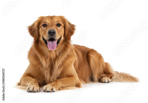 dog, golden retriever, animal, pet, mammal, canino, domestic, portrait, lying, studio, white, background, fur, purebred, friends, companion, cute, happy, tongue, looking, 1, adorable, friendly, doggy, face, pedigree, gold, retriever, isolated