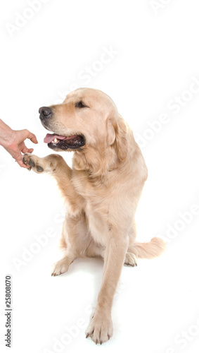 golden retriever qui donne la patte