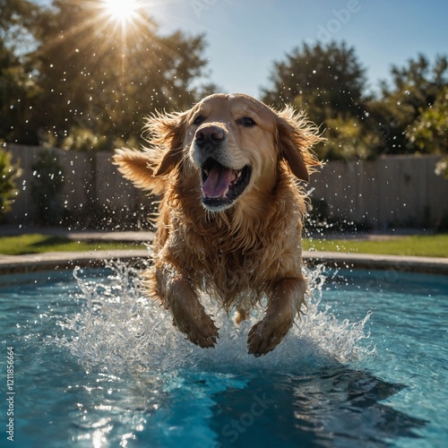 golden retriever running in water. Golden retriever running in water. Golden retriever puppy enjoying water, isolated portrait of cute young dog with a happy expression