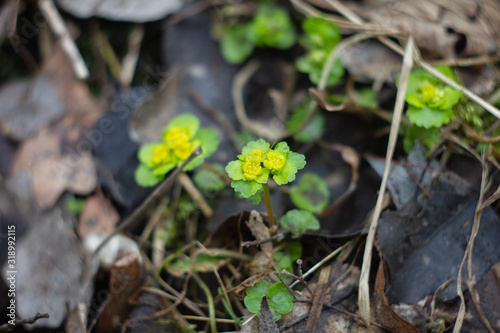 golden saxifrage medicinal plant in spring at water source
