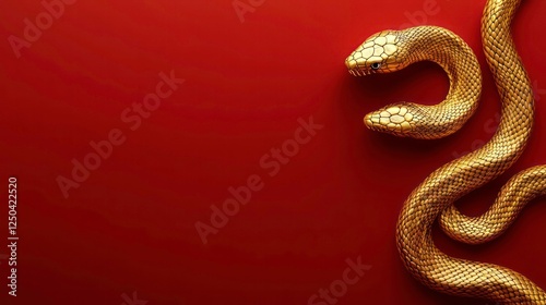 golden snake, year of the snake, solid red background, copy space