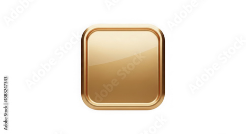 Golden square icon with shiny surface and rounded corners isolated on transparent background