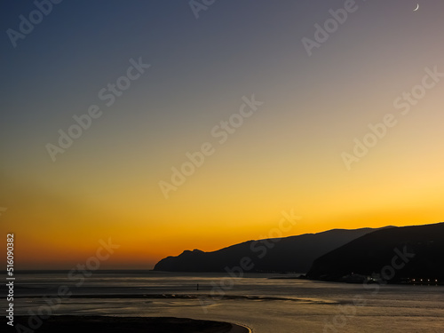Golden sunset at Troia Beach, Setubal, Portugal. Wonderful colors.
