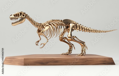dinosaur, skeleton, tyrannosaurus, gold, gold, fossil, bone, paleontology, prehistoric, ancient, extinct, reptile, predator, museum, display, model, three-dimensional, render, art, bronze, metallic, statue, figurine, wildlife, animal, science, biology, history, evolution, nature, artwork, creation, design, rendering, realistic, exhibit, collection, vintage, antique
