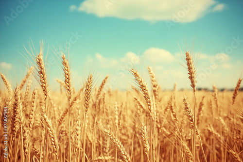 wheat, field, agriculture, crop, cereal, grain, nature, farm, sky, plant, summer, ear, corn, harvest, yellow, food, rye, gold, gold, rural, blue, bread, landscape, barley, ripe
