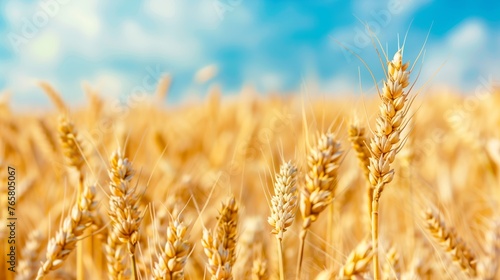 wheat, field, agriculture, crop, grain, cereal, sky, nature, farm, plant, summer, harvest, food, ear, yellow, corn, bread, gold, blue, rural, ripe, rye, gold, landscape, barley, growth, countryside, country, season, farmland, stem, background