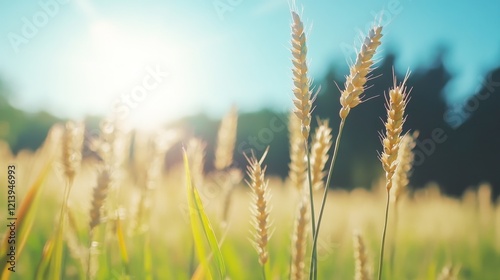 Golden Wheat Field Sunset; Rural Landscape; Agriculture; Summer Harvest; Food Production; Background Trees; Website Banner