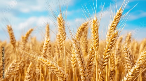 gold, wheat, field, bright, blue, sky, cloud, harvest, nature, agriculture, rural, crop, plant, growth, summer, landscape, outdoors, farmland, goldenrod, horizon, sunlight, scenery, beauty, grain, mature, sunny, sunshine, skyward, organic, farming, dirtied, natural, yellow, wild, vibrant, idylli, peaceful, freshness, expansive, environment, sunbeam, day, wheatfield