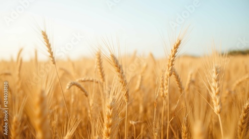 wheat, field, agriculture, nature, crop, harvest, rural, farming, landscape, summer, grain, gold, sunshine, plant, organic, growth, environment, botanical, sunlight, meadow, flowering, horizon, season, clear, blue, sky, calmness, ecology, scenery, ear, stalk, beauty, natural, field, cultivation, earth, country, bright, summer day, pastoral