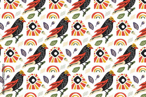 goldfinch, bird, pattern, design, colourful, nature, leaf, sun, decorative, seamless, wildlife, vibrant, ornithology, natural, beautiful