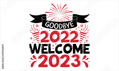 Goodbye 2022 Welcome 2023 - Happy New Year T shirt Design, Modern calligraphy, Cut Files for Cricut Svg, Illustration for prints on bags, posters