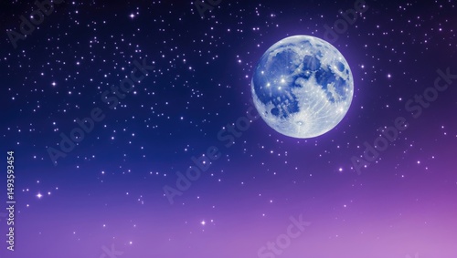 Gorgeous full moon accompanied by a starry night sky in purple and blue hues