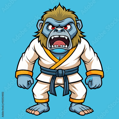 gorilla, monkey, cartoon, illustration, animal, karate, kimono, judo, taekwondo, vector, sport, mascot, character, man, logotype, boy, fight, martial, comic, art, children, fighter, black, kick, ball, drawing, player, teenage, fighting, strong, hero, superhero, face, head, symbol, teeth, design, beast, mask, danger, horror, costume