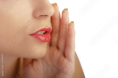gossip, gossiping, advertisement, communication, cute, expression, face, female, gesture, girl, hand, head, hearsay, isolated, message, mouth, news, secret, speaking, tale, talking, tattle, tell, voice, whisper, white, woman, young, sexy, lip, teeth, nail, fingernail, shiny, glossy, beautiful