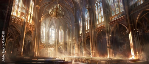 Gothic cathedral interior, majestic architecture, spiritual atmosphere
