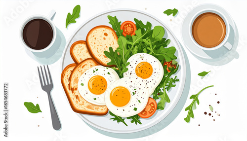 brunch, epicure, egg, greener, toast, hot drink, vector, minimal, breakfast, food, healthy, meal, plate, cafes, fresh, illustration, delicious, culinary, lifestyle, morning, trendy, appetising, nourishment, simple, salad, tomatoes, dinner, cheese, dish, vegetable, meat, basil, lunch, vegetable, white, bread, eatery, closeup, tasty, snack